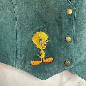 Y2k Loony Tunes Tweety Bird Leather Suede Vest - A40