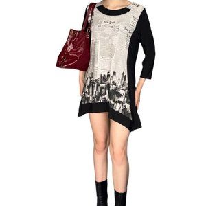 Y2K Newspaper Print Mini Dress Black and White Size Medium, Pretty Women, Good Condition