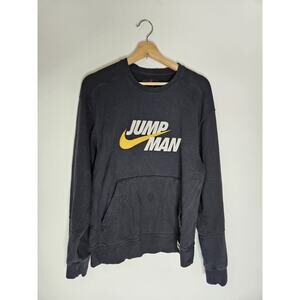 Y2k Nike Air Jordan Jumpman Fleece Crew Black S Kangaroo Pocket Swoosh Pullover.