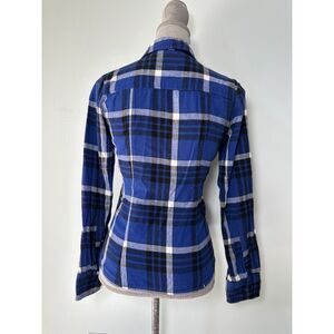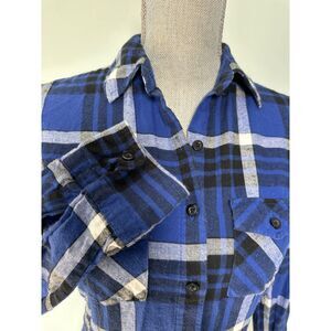 Y2k Nollie Blue Plaid Button-Down Flannel Shirt size Small