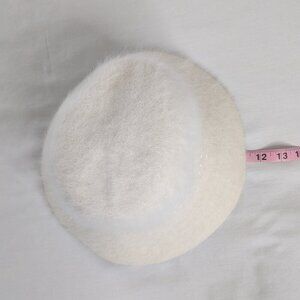 Y2k Off White Cream Rabbit Hair Wool Fuzzy Soft Embroidered Bucket Hat