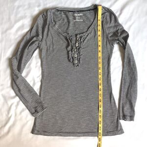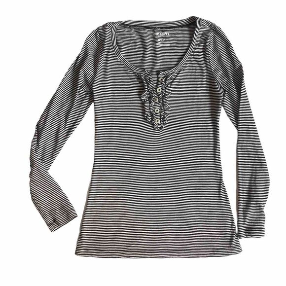 Y2k Old Navy Black White Striped Ruffle Henley Tee Shirt Long Sleeve Women's XS