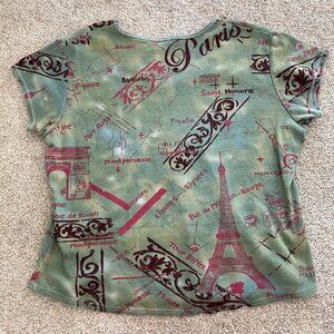 Y2k Paris Graphic Green & Pink Soft French Boho Chic Top 100% Cotton