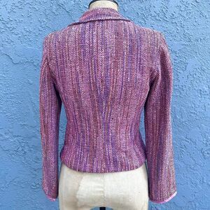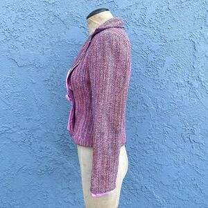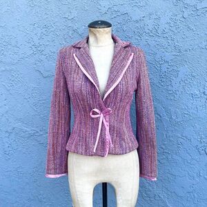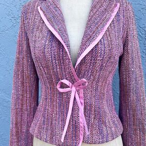 Y2k Pink and purple tweed blazer with bow detail from The Limited. Size small. Silk and acetate. Light threads on bow. Very 2000s legally blonde barbiecore.