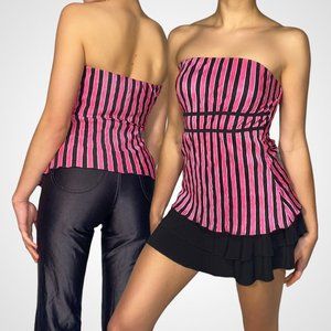 Y2k Pink and Black Striped A-Line Tube Top