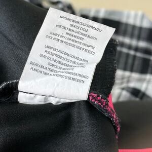 Black/white/pink, tie back, tie halter neck, babydoll, pockets, pleated, lined top-lightly padded, back zip/hook & eye closure, black elastic stretch band