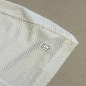 This white nike tennis skirt is a must for tennis season. Has a nike tennis court logo on the bottom and a circle on the top corner.