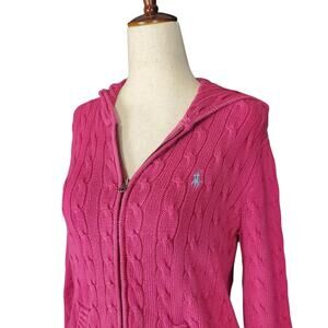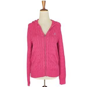 Y2k Ralph Lauren Sport Slim Fit Pink Cable-Knit Zip-Up Sweater - Large