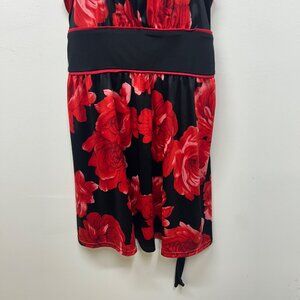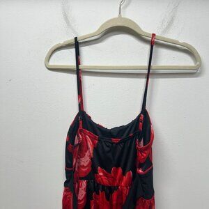 Y2k Red & Black Floral Sleeveless JFW baby-doll Dress Waist Tie - XL whimsigoth