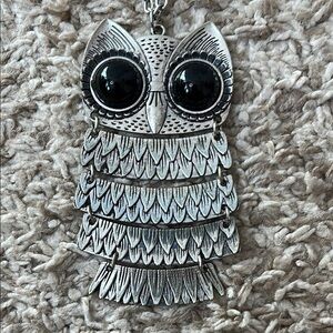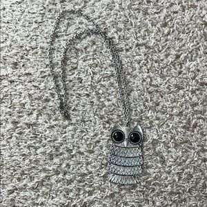 Y2k Retro Silver Metal Owl Pendant Long Length Necklace