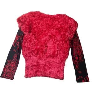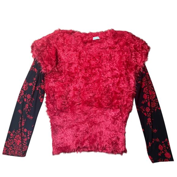 Y2k Roommates Red Shaggy Knit Cropped Layered Top Size Large