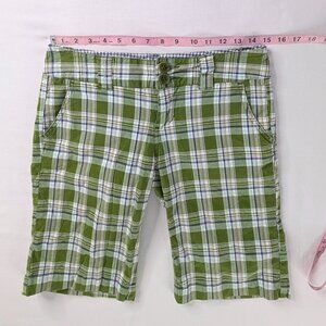 Y2k Roxy Green Black White Plaid Low Rise Bermuda Shorts