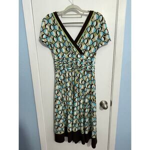 Y2k Sandra Darren Dress Size 12 Green Brown Abstract Gilmore Girls Boho 90s