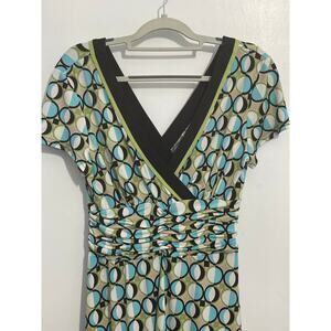 Vintage Y2k Sandra Darren Dress Size 12 Green Brown Abstract Gilmore Girls Boho 90s, in great condition