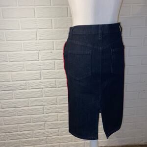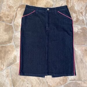 Y2k See by Chloe Denim Jean Skirt Knee Length Hot Pink Side Piping Dark Wash 8