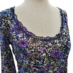 Y2k Sigrid Olsen Mesh Long-sleeved Purple Floral Print Euro Vibes Top - Small