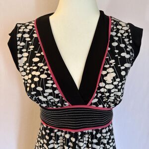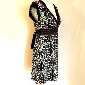 Y2k Black and white polka dot babydoll dress with pink trim and tie in the back