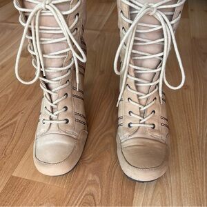 Y2k Steve Madden Tan Leather Sneaker Heel Boots Sz 10 Lace Up Vintage Beige 90s