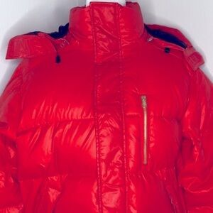 Y2k Stüssy tomato red puffer down hooded coat