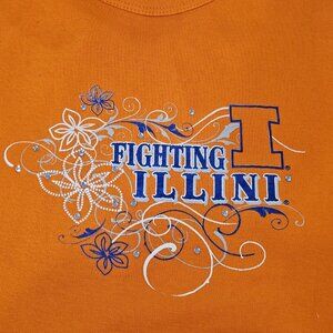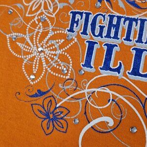 Y2k University Of Illinois Fitted Tshirt Orange Rhinestones Fighting Illini Sz M
