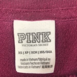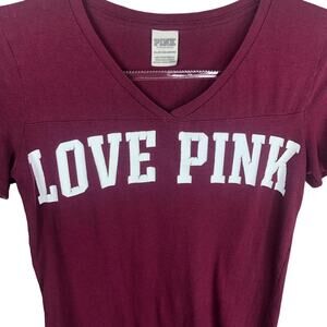 PINK Victoria’s Secret Maroon Graphic V-Neck T-Shirt, Extra Small. Peeling on Graphic Lettering