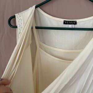 Y2k Venus Womens Off White Draped Cowl Neck Sleeveless Sequin Top