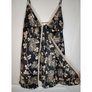 Y2k Victoria's Secret Black Gold Tie Babydoll Chemise Size M Lace Satin