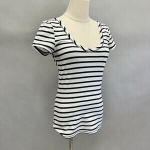 Y2k Victorias Secret white Striped Short Sleeve Tee back ruching size small