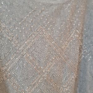 Y2k Vintage Angora Hair Beaded Dolman Sleeve Sweater Knit Gray