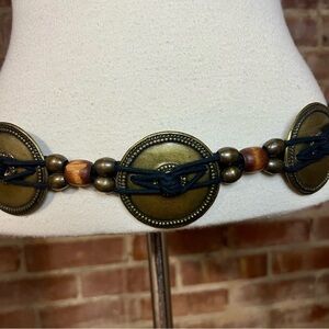 Y2k Vintage Black and Bronze Metal Beaded Women's Festival Belt -Size S -AC06