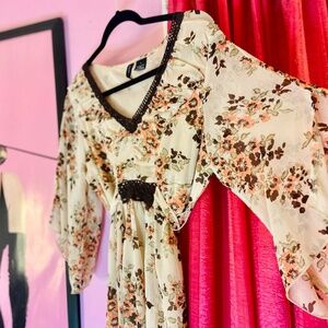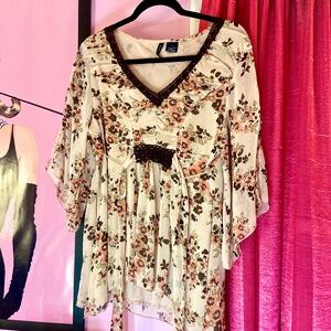 Y2k Vintage Floral Fairycore Boho Chiffon Kimono Sleeve Blouse Women’s Large