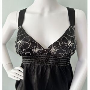 Y2k Vintage Forever 21 Black Floral Embroidered Sleeveless Mini Dress size XS