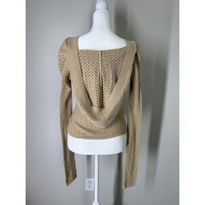 Y2k Vintage Fossil Open Knit Hooded Sweater Sz XS Fitted Boho Neutral Beachy