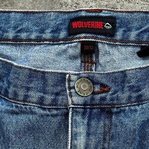 Description: y2k workwear skater carhartt style WOLVERINE baggy carpenter jeans, size 38 x 30, in great condition with no holes but slight fading as shown in pictures