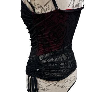 Y2k Whimsygoth Sheer Overlayed Ruched Tank - gently used, no notable flaws