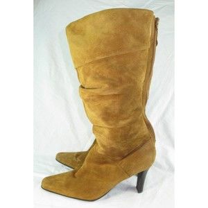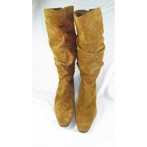Y2k White Mountain Brown Suede Leather Slouch Boots & Heel Women's Size 8