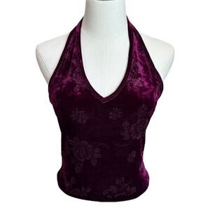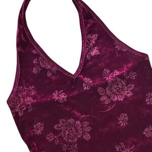 Y2k XOXO Cherry Cola Velour Halter Tank - gently used, the hem has been restitched/fabric glue - not noticeable when on
