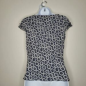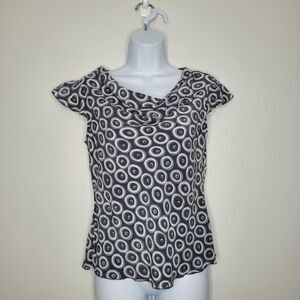 Y2k abstract circle print 100% silk cowl neck flutter sleeve top size small