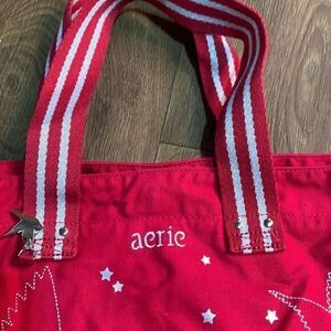 Aerie Y2k red tote bag, embroidered bird and star design. Inner pockets. Like new condition.