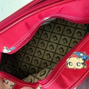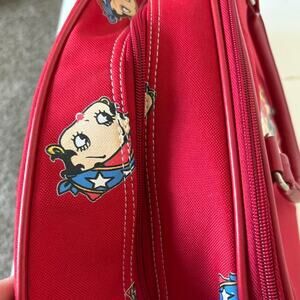 betty boop, canvas bag, red and white, travel purse, retro style, cartoon print, vintage accessory, quirky tote, collectible luggage, 2000s aesthetic
