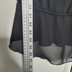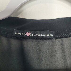 Love squared top: black, button tie front, semi sheer, short sleeve, flowy, layering,