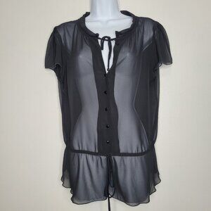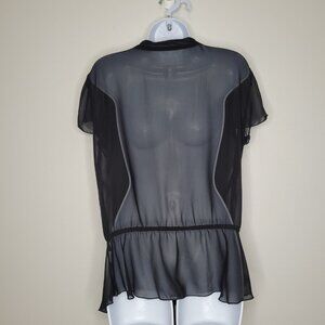 Y2k black semi sheer peplum office siren cute goth career work top button front