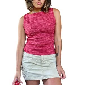 Soft spacedye boatneck tank top. Sweater like material, pink and red. 95% polyester, 5% spandex. Y2K brand No Boundaries, size medium.