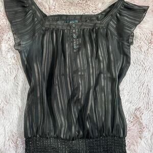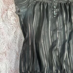y2k brown striped BCX square neck flowy top with ruched hem! has button details and a built in cami underneath!! size large ptp 17-20