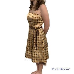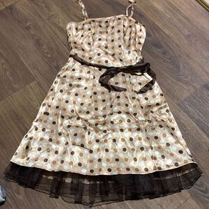 Y2k early 2000 brown polka dot dress. Layered bottom, tie waist, fitted top with a flare bottom. Pin up retro style dress. Lined and zipper back.