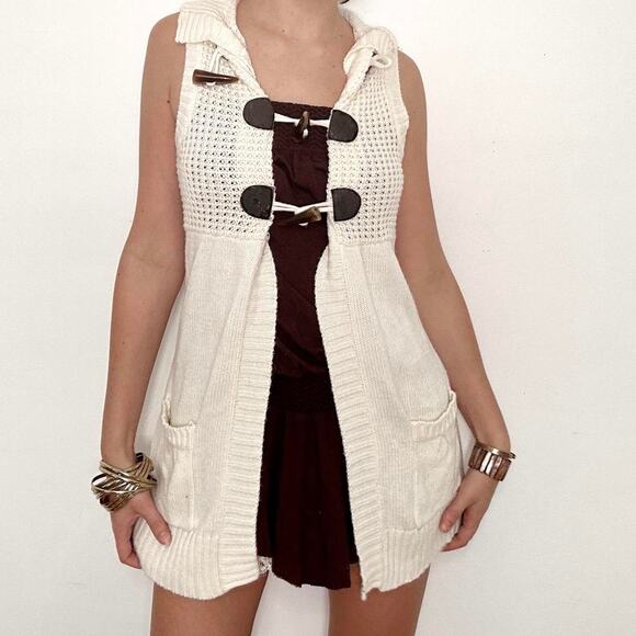 Y2k cream knit take out toggle closure cardigan