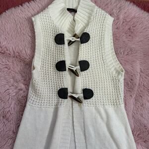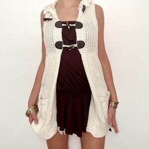 y2k cream knit take out cardigan with toggle closure! has pockets and an open front size medium ptp- 14-20
