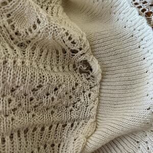 White crocheted y2k bolero. Cap sleeves, cropped cut, flipped collar. Little hole under the collar- can’t tell when wearing. Made in the USA. 100% acrylic. Y2K brand Wet Seal. Size small.