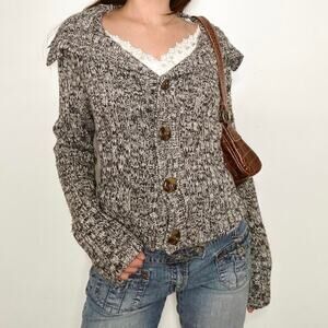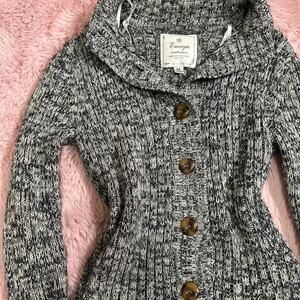 y2k energie gray and black knitted cardigan with collar! amazing quality & perfect condition. size med ptp 15-23