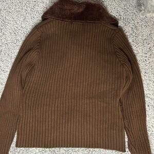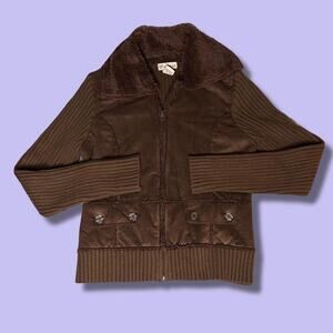 Y2K Glimmer Brown Suede Fur Lined Sweater Jacket